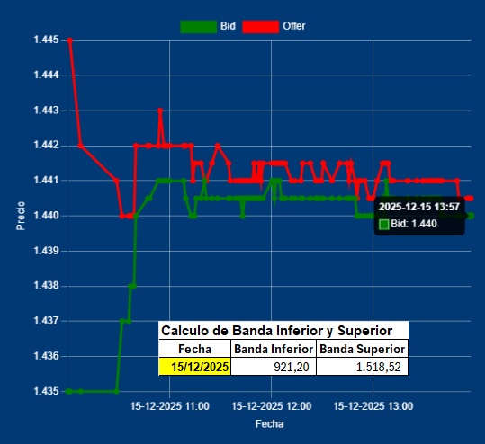📌🔁14,00 Hs Cotización del MULC entre Bancos – Dólar Divisa Bid 1440,00 – Offer 1440,50 Parecería cerrar, sin oscilaciones en el MULC ¿Cuántos dólares del campo ingresarán en el verano y qué impacto tendrá en el MULC?